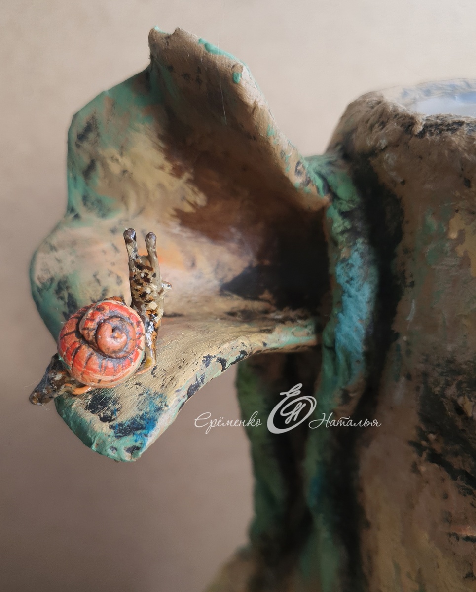 Всем доброго утра! 🤗 На днях в п. Пудость на мельнице Штакеншнейдера открылась выставка на тему "Водяного". Наше Гатчинское товарищество художников, где я и состою, приняло участие в сохранении культурных ценностей и специально для музея Штакеншнейдера выполнило в дар 27 художественных работ на тему "Водяного", где представлена и моя работа, кашпо из папье-маше)). Здесь уже восстанавливается старинная водяная мельница и тут же будет располагаться "Резиденция Водяного".)) Целый месяц я пыхтела над созданием этого персонажа))), изучала о нём материалы, собирала образ из тысячи уже имеющихся, совмещала с мифологией и лепила кусочек за кусочком 🤣. На пол пути даже думала уже оставить эту идею))), так мне он тяжело давался🙈. Цветовая палитра была строго ограничена мифологией, да и его внешний вид и его окружение тоже должны были соответствовать книжным параметрам)). И вот, наконец-то мой Водяной готов и отправился на пмж в свой новый дом, на мельницу !)) Честно говоря, с