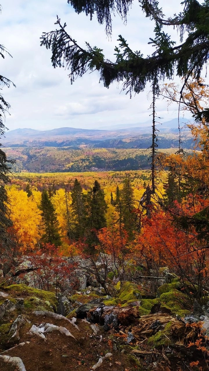 фотопсихология #соматическаяпрактика Горы. Лес. Осень. Пауза… Тишина между вдохом и выдохом. Багрянец, золото, последние всплески зелени - лес дышит, переливается, будто застывший огонь. Дальше, за деревьями, горы растворяются в дымке, а небо, тяжелое от облаков, кажется ближе, чем есть. В этом пейзаже нет статики: Вот лист, отрываясь, рисует в воздухе свою последнюю траекторию. Вот тень скользнула по мху, вот ветер шевельнул макушки елей. Вот горы на горизонте, как намёк на твёрдость, на то, что остаётся, когда всё остальное уже отпустило. Всё движется, даже когда кажется неподвижным. Вдохни… пусть воздух наполнит тебя прохладой, сыростью, запахом хвои и преющей листвы. Задержите взгляд на одном дереве. Осина, дрожащая последними алыми листьями, или берёза, скелет которой уже проступает сквозь золото. Почувствуй, как оно стоит: корни в земле, ствол - мост между небом и почвой. Ощути, что твое дыхание синхронизируется с ритмом леса… Вдох - ветер качает ветви, выдох - л