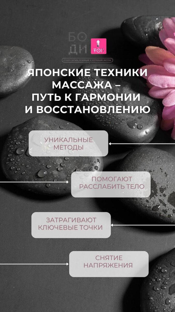 Усталость и напряжение накапливаются? Сколько раз ты чувствовала, как стресс и усталость берут верх? ✨ Японские техники массажа – путь к гармонии и восстановлению. Эти уникальные методы, помогают расслабить тело, затрагивая ключевые точки для снятия напряжения и улучшения кровообращения.