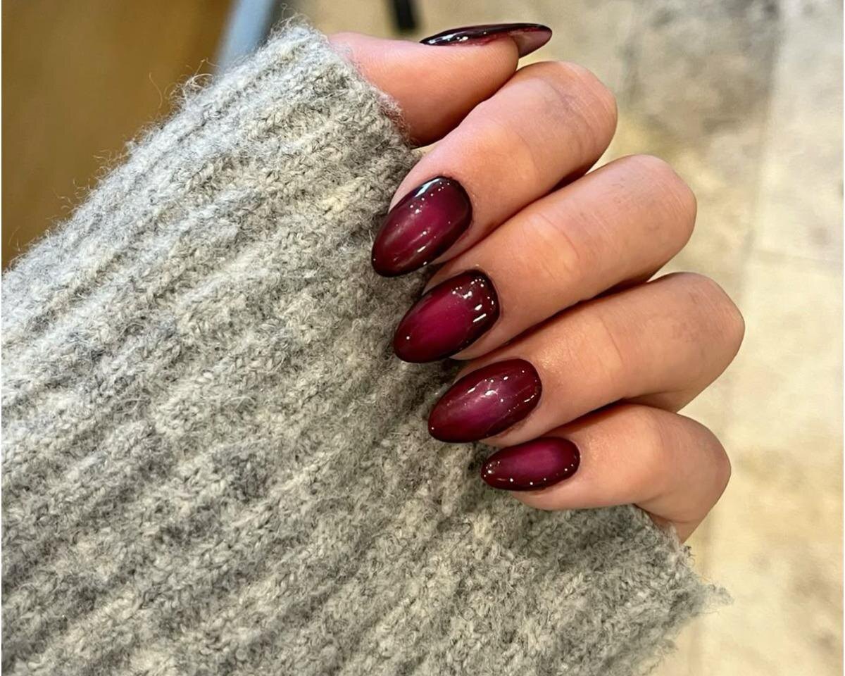 Секрет популярности прост: гранатовый цвет сочетает в себе страсть, уверенность и тонкую элегантность Маникюр в таком стиле может быть как глянцевым, так и матовым, а также украшенным нюансами: градиентом, легким мерцанием, эффектом «кошачьего глаза» или фольгированными акцентами. Особенно громко о тренде заговорили после появления Деми Ловато на светском мероприятии: черное кожаное платье, классический мейкап и ногти, похожие на капли гранатового желе. Именно этот эффект — полупрозрачных, как будто наполненных светом зерен — стал настоящим хитом в Instagram и Pinterest. Интересно, что гранатовый нейл-арт часто сравнивают с вишневым желе — полупрозрачная текстура лака на длинных ногтях напоминает фруктовый десерт. При этом свет, проходящий сквозь кончики ногтей, создает модный эффект «прозрачного окошка», визуально вытягивая пальцы и добавляя образу легкости. Повторить тренд в домашних условиях проще, чем кажется: А если вы хотите добиться более выраженной прозрачности — используйте ти