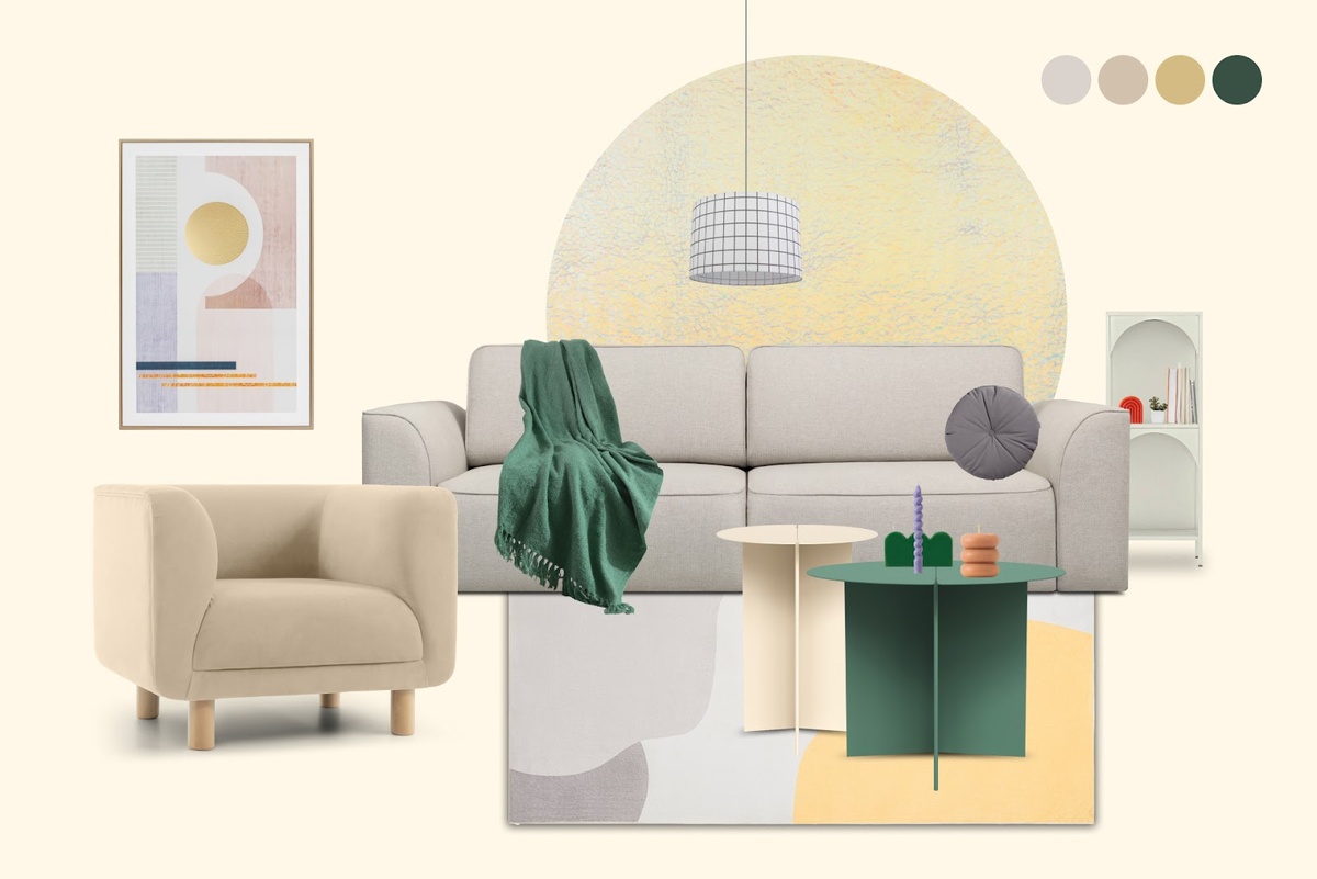 Модные оттенки придадут интерьеру то самое настроение, которое вы ищете: медитативную мягкость для погружения в чтение или энергию и свежесть морского бриза для атмосферы долгожданного отпуска. Собрали готовые модные решения из ассортимента divan.ru. Интерьеру с таким настроением буквально захочется улыбнуться. И даже если сквозь окна не пробиваются солнечные лучи, создавать иллюзию освещенной комнаты поможет мягкий желтый оттенок сливочного масла. В нем нет слишком активной энергии лимонных и канареечных расцветок, но присутствует приглушенная сдержанная сила, способная согреть своим теплом. Дополнить трендовый оттенок, воплощенный в диване, кресле, светильнике и декоре, помогут приглушенно-зеленые журнальный столик и плед. ▶️Товары divan.ru в этом сете Диван прямой Спейс Soft Light Кресло Венето Velvet Beige Ковер Стоун-Yellow 200x300 Журнальный стол Эмма Green Картина Абстракция Dusty Pink Баланс — своеобразная философия, захватившая и умы, и интерьеры. Гармония, равновесие — все эт