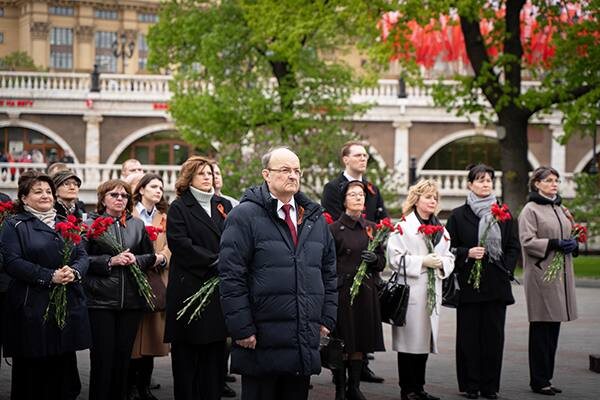 Под звучание церемониальной музыки Михаил Александрович Пирадов и сотрудники НЦН проследовали организованной колонной к мемориальной композиции. Военнослужащие, возглавляемые офицером батальона почетного караула Отдельного комендантского Преображенского полка, установили венок у Могилы Неизвестного Солдата. Минута молчания состоялась под ритмичные удары метронома, создавшего атмосферу глубокого размышления и единения сердец. Завершилась символическая часть мероприятия исполнением Государственного гимна РФ и возложением цветов.