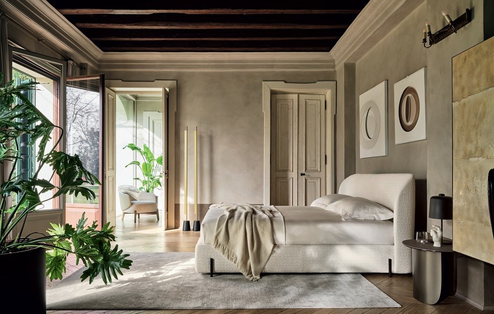 Спинка кровати Rendez Vous напоминает венчик цветка, с элегантными линиями, которые заканчиваются мягким изгибом