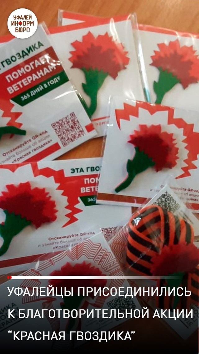 В Верхнем Уфалее проходит благотворительная акция «Красная гвоздика». Акция «Красная гвоздика» - благотворительный проект, в рамках которого активисты распространяют значки в виде красной гвоздики за символическую сумму всем желающим. Вырученные деньги идут на помощь ветеранам в фонд «Память поколений». В дальнейшем на эти деньги закупаются инвалидные кресла-коляски, слуховые аппараты, протезы и многое другое. Сегодня к акции присоединились работники Администрации округа.