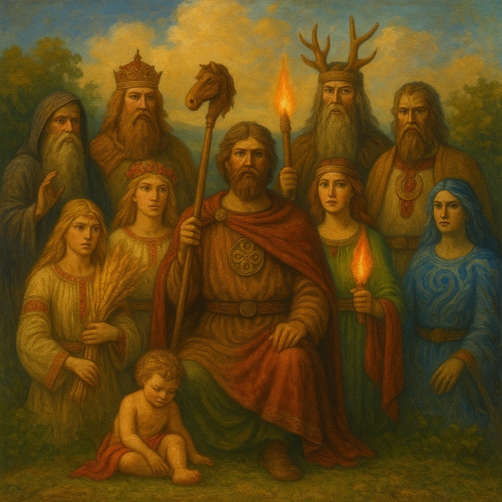 Перун — сияющий генерал славянского Олимпа, но его величие опирается на работу тихих божеств, чьи имена редко вспоминают. Эти до-перуновы силы — как фундамент дома: не виден под полами, но без него обвалится крыша. Слушая гром, стоит помнить, что отзвук перекатывается по небу, выкованному Сварогом, дует на крыльях Стрибога и отражается от глиняных стен, благословлённых Родом и Ладой. Когда мы снова услышим раскат, давайте благодарить не только Перуна, но и тех, кто воздвиг для него сцену.