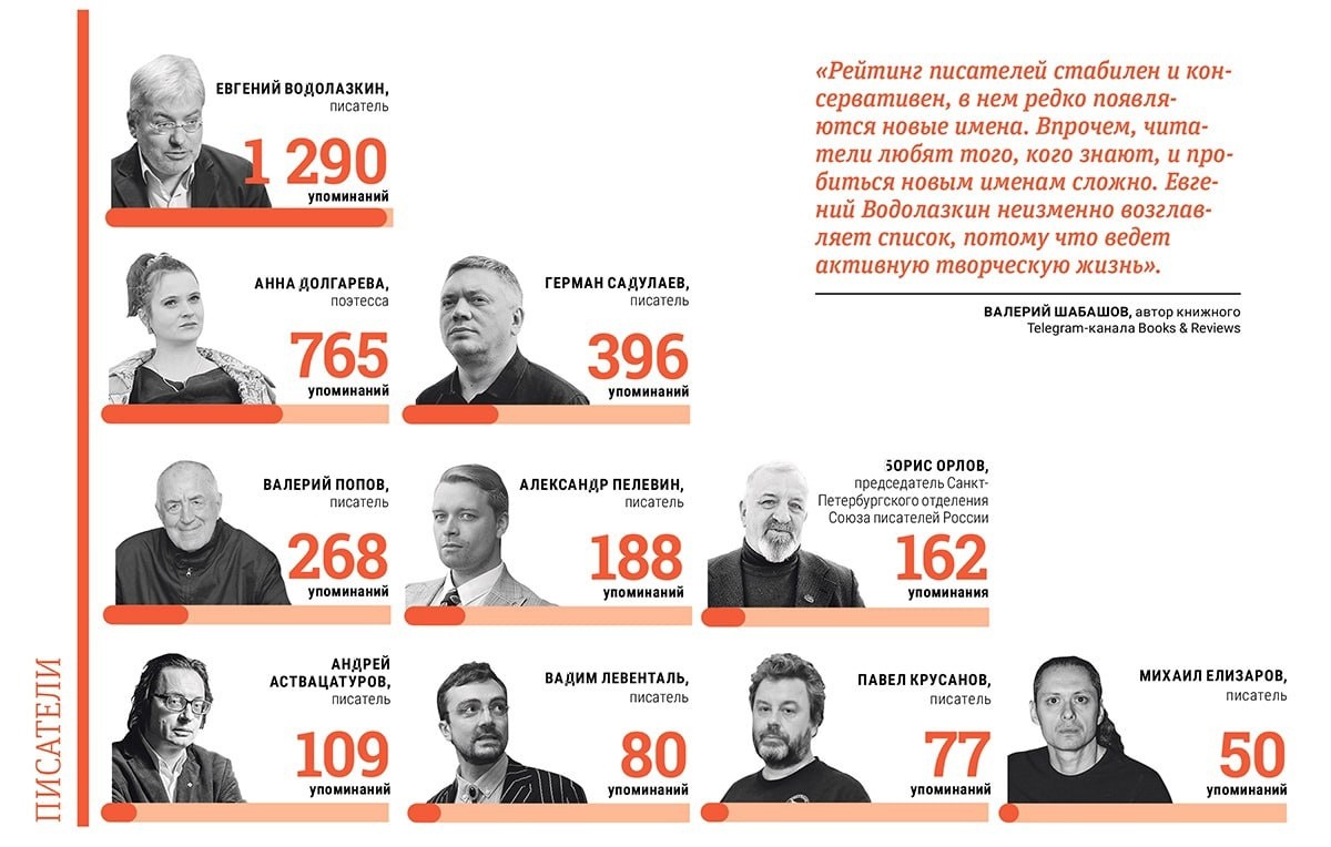 Кого в Петербурге из писателей чаще всего цитировали в СМИ в первом квартале 2025 года? Источник: Петербургский дневник