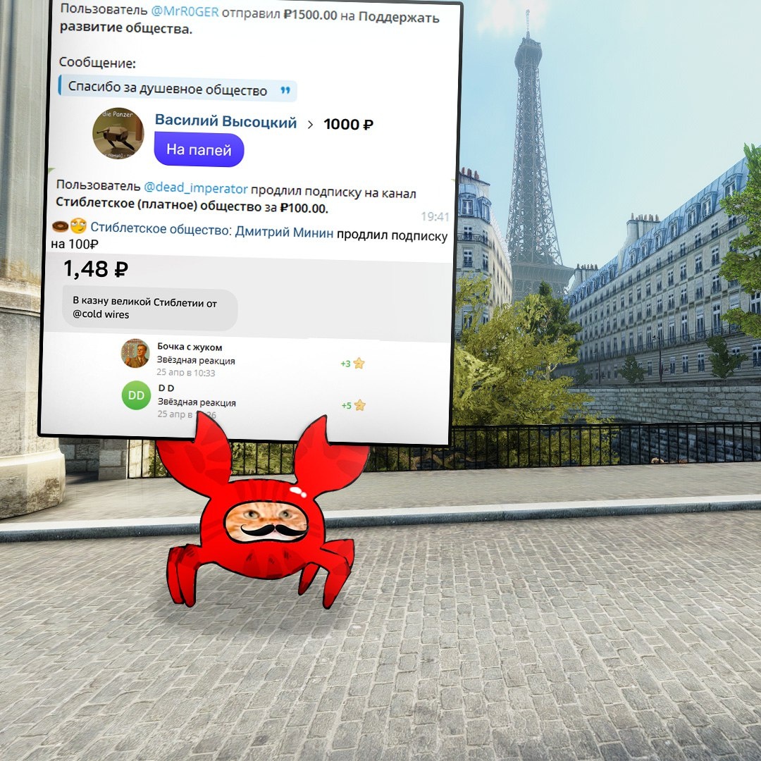 Ранний пост с донатерами (таки майские выходные) 😑 Говорю спасибо: @MrR0GER, Василию Высоцкому и Cold Wires (Я не знаю какой конкретно, их 2 в телеграме, с "_" и слитно) за донаты 💸; @Dead_imperator за подписку в tribute (ТГ) 📱: Дмитрию Минину за подписку в ВК донатах 📱; Бочке с жуком из колерадо и D D за звёзды в ТГ ⭐️ Пополнить казну Стиблетии (и других стиблетских государств): Ссылка (МТС, верни бюджет!)