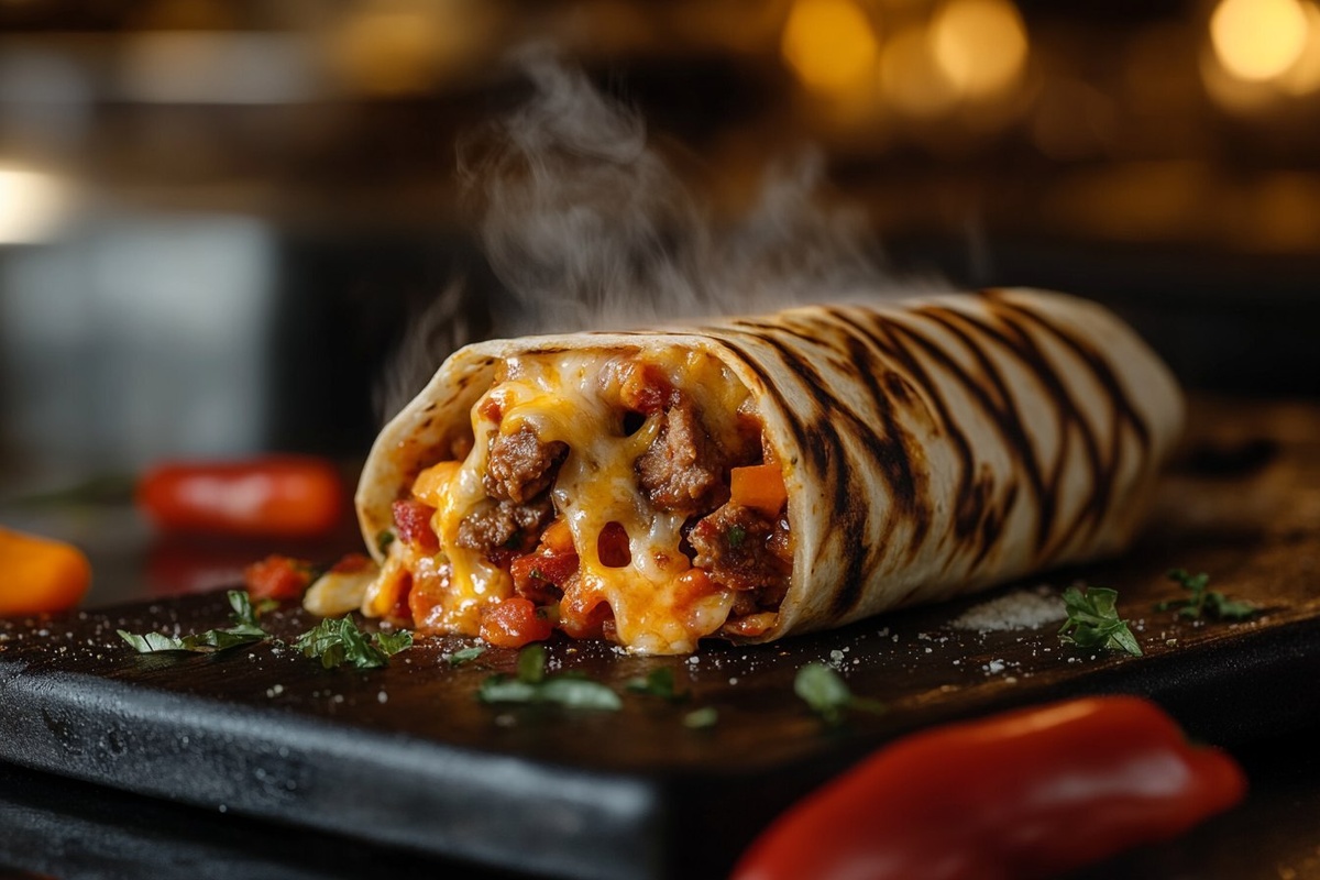 Создано на основе запроса: Title: Nacho Cheese Beef Wrap | STYLE: Close-up Shot right view | EMOTION: realistic as possible | SCENE: KEYWORD
