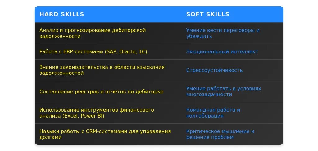 Пример после адаптации: Профессиональное владение программами 1С и Excel, навыки ведения переговоров с клиентами, управление дебиторской задолженностью.