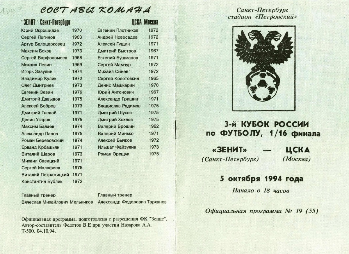 Сергей Семак забил за ЦСКА 84 гола в 329 матчах. Первый получился максимально символичным. 5 октября 1994 года ЦСКА вышел на поле стадиона «Петровский» в Санкт-Петербурге – на матч 1/16 финала против «Зенита». На трибунах собралось около трех тысяч зрителей, и смело можно сказать, что это весьма солидная аудитория для команды, которая тот сезон закончит на 13-м месте в первой лиге. В 1994-м «Зенит», например, проиграл «Заре» из Ленинск-Кузнецкого, майкопской «Дружбе», читинскому «Локомотиву», пермской «Звезде», играл вничью с «Эрзу» из Грозного, с «Интерросом» из поселка Московский, уступил в дерби «Смене-Сатурну» и влетел новороссийскому «Черноморцу» со счетом 0:6. Но ЦСКА приехал в Северную столицу на фоне усталости. 29 сентября команда Александра Тарханова вылетела из Кубка кубков, затратив кучу сил и, что самое важное, эмоций, проиграв в Будапеште «Ференцварошу» в серии пенальти. 2 октября армейцы обыграли в чемпионате «Аланию» (2:0), поэтому матч в Санкт-Петербурге стал для ЦСКА т