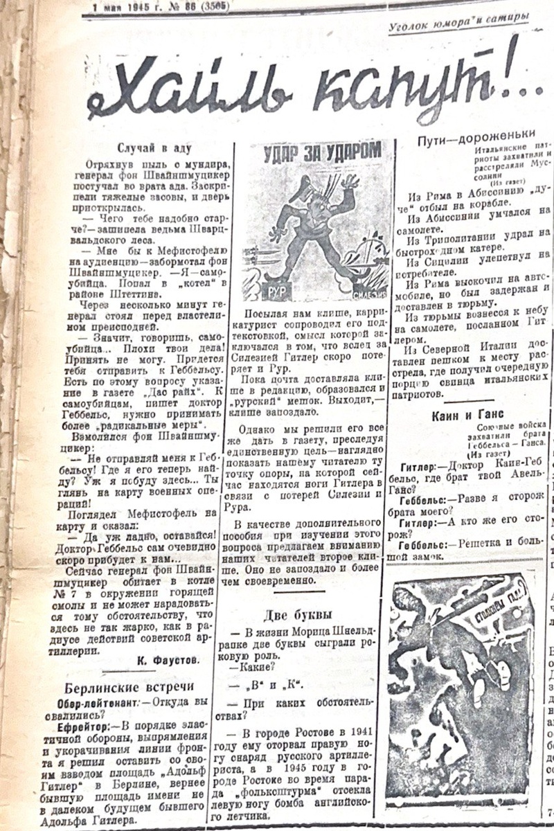 В мае 1945 газета «Красная Черкессия» опубликовала сатирические заметки о фашистах