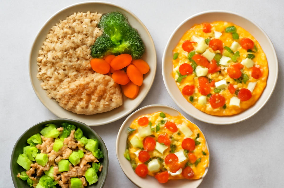 - Соблюдайте баланс: Включайте белки (курица, рыба, яйца), углеводы (киноа, гречка) и овощи в каждый прием пищи.