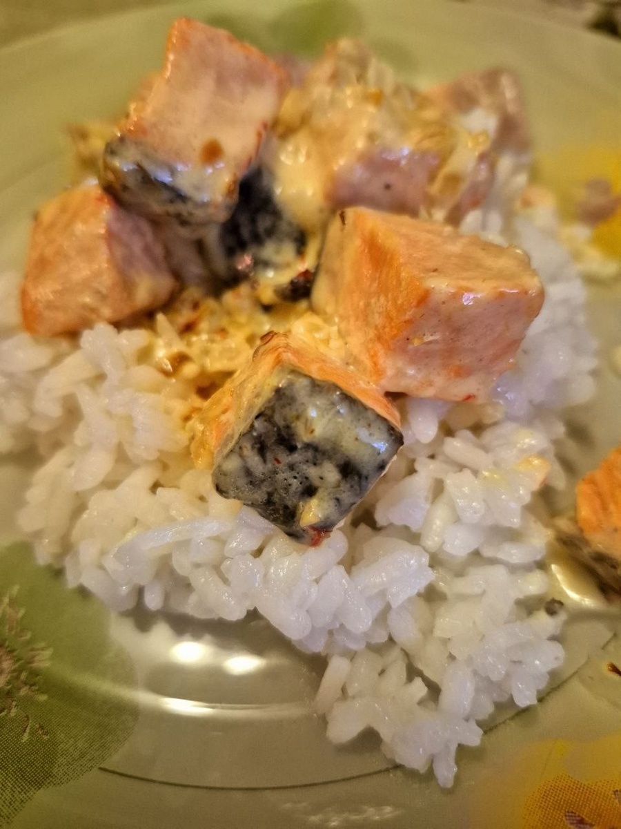 На тарелочку выкладываем рис и сверху нашу рыбку. Кушаем с удовольствием. Приятного аппетита!