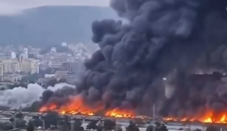 Эпичное видео пожара на вещевом рынке в центре Тбилиси распространилось в интернете. Пожарным удалось справиться с огнём за 3,5 часа.
