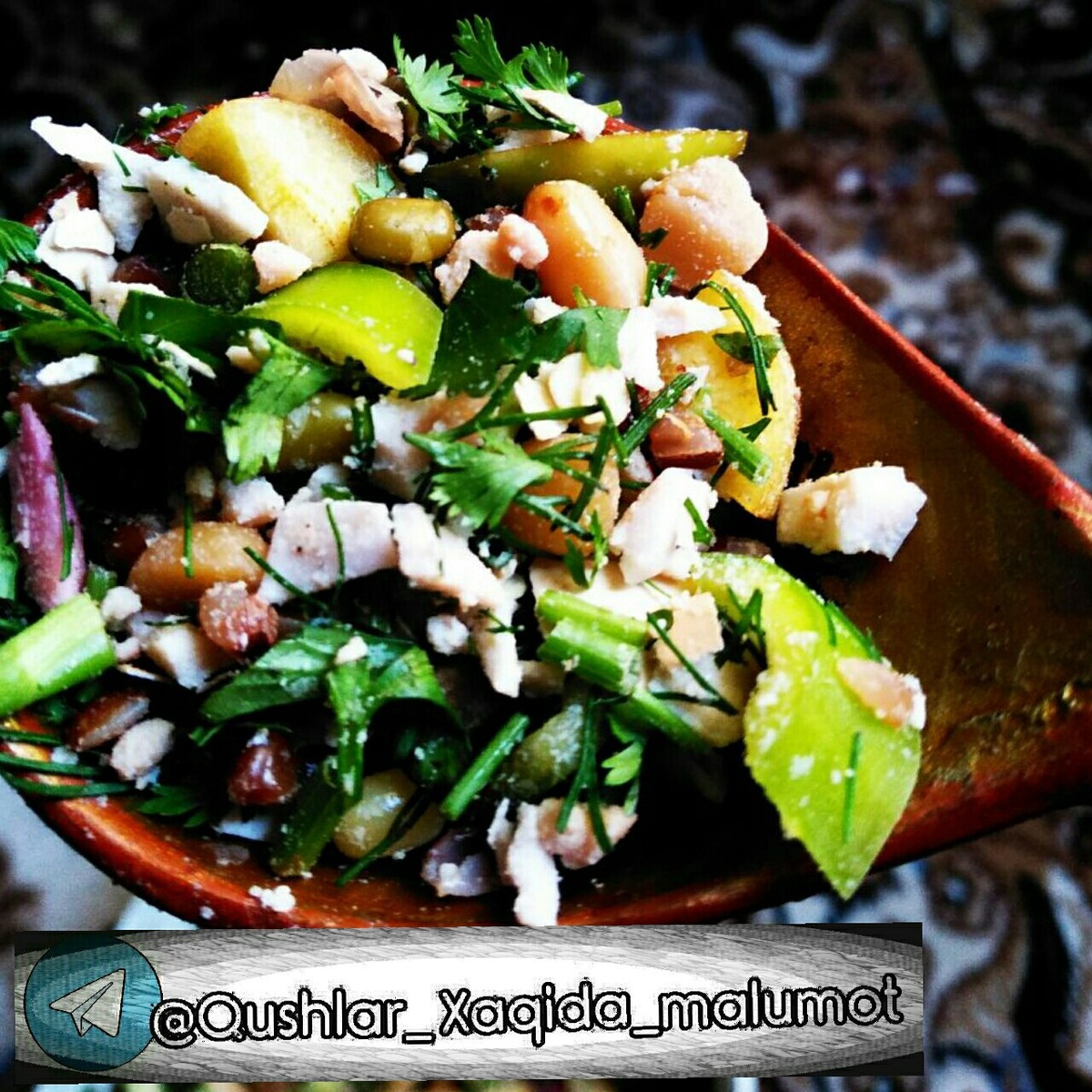 АССАЛАМ АЛЕЙКУМ Вкусный и богатый витаминами салат для птиц Для салата: 1)- половина столовой ложки фасоли, маша, гарыкса и гречки 2)- 2 небольших яблока, желтая и красная морковь, 4/2 свеклы, листья салата, половина пучка петрушки и укропа, половина болгарского перца, вареное яйцо, вареный и сушеный яичный желток. Вареные продукты: Чтобы закипеть, сначала добавьте фасоль, варите 15 минут, затем добавьте маш и варите еще 30 минут. Затем добавьте гарох и варите еще 10 минут, затем добавьте гречку и варите еще 5 минут. Этот процесс занимает 1 час, главное, чтобы изделия были мягкими и не трескались. Второй этап: Яблоки, морковь, капусту, фасоль, болгарский перец и яйца нарезают кубиками и добавляют в отваренную крупяную смесь. Сверху посыпают измельченным яичным желтком и скармливают птицам. На 1 пару птиц дается 3/4 от 1 столовой ложки.