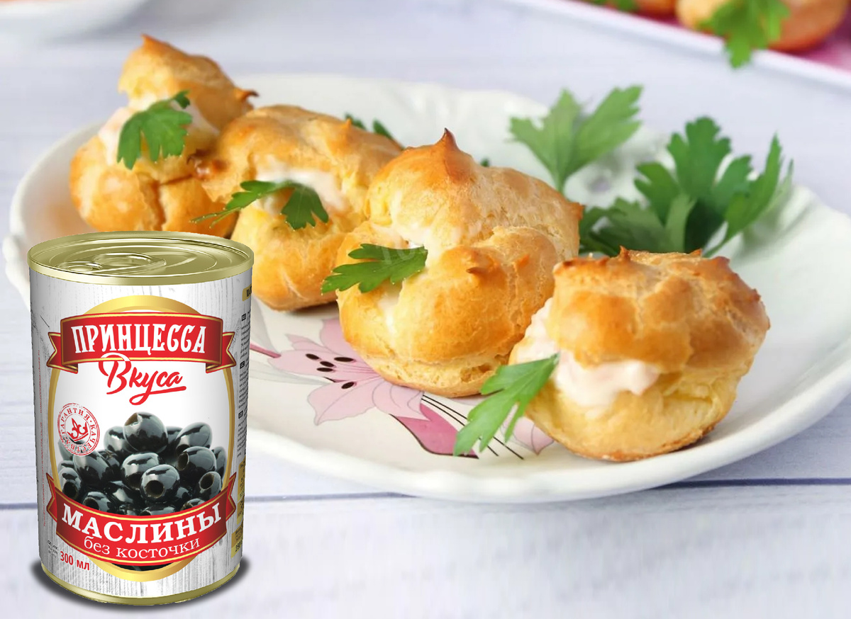 Профитроли с печенью трески - отличная закуска на праздничный стол. А если еще учесть, что в магазинах сейчас можно купить все, даже готовые профитроли (видела в российских магазинах и такое!), то времени на приготовление блюда вы потратите совсем не много. Молоко - 90 мл Вода - 90 мл Масло сливочное - 70 г Мука пшеничная - 125 г Соль, сахар - щепотка Яйца куриные - 3 шт. Профитроли - 10-15 шт. Печень трески - 1 банка (230 г) Яйца куриные вареные - 3 шт. Огурец свежий - 1-2 шт. Лук зеленый - 2-3 шт. Оливки черные - 10 шт. Ну, а если делать профитроли самим, то и в этом случае на все про все уйдет не больше 30-40 минут. Итак, мы хотим предложить вам базовый рецепт приготовления заварного теста для "булочек", которые можно начинять либо соленой начинкой, либо сладкой, потому как тесто получается пресным на вкус. Мы пробовали уже несколько рецептов для воздушного лакомства, но остановились на этом. Для приготовления теста подготовим продукты по списку. В ковш (кастрюлю) вливаем молоко и в