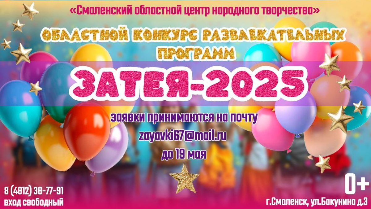 🔶️Приглашаем организаторов досуга, ведущих и исполнителей игровых, развлекательных, массово-зрелищных, музыкально-игровых и шоу-программ принять участие в региональном конкурсе «Затея-2025». Этапы: 🔸️прием заявок - до 19 мая включительно; 🔸️просмотр игровых программ участников, определение и награждение победителей - 10 июня. 🔶️Подробности в положении http://www.smolcentrnt.ru/files/493/2025-zateya.pdf или по телефону 8 (4812) 38-77-91. #СмоленскийЦентрНародногоТворчества