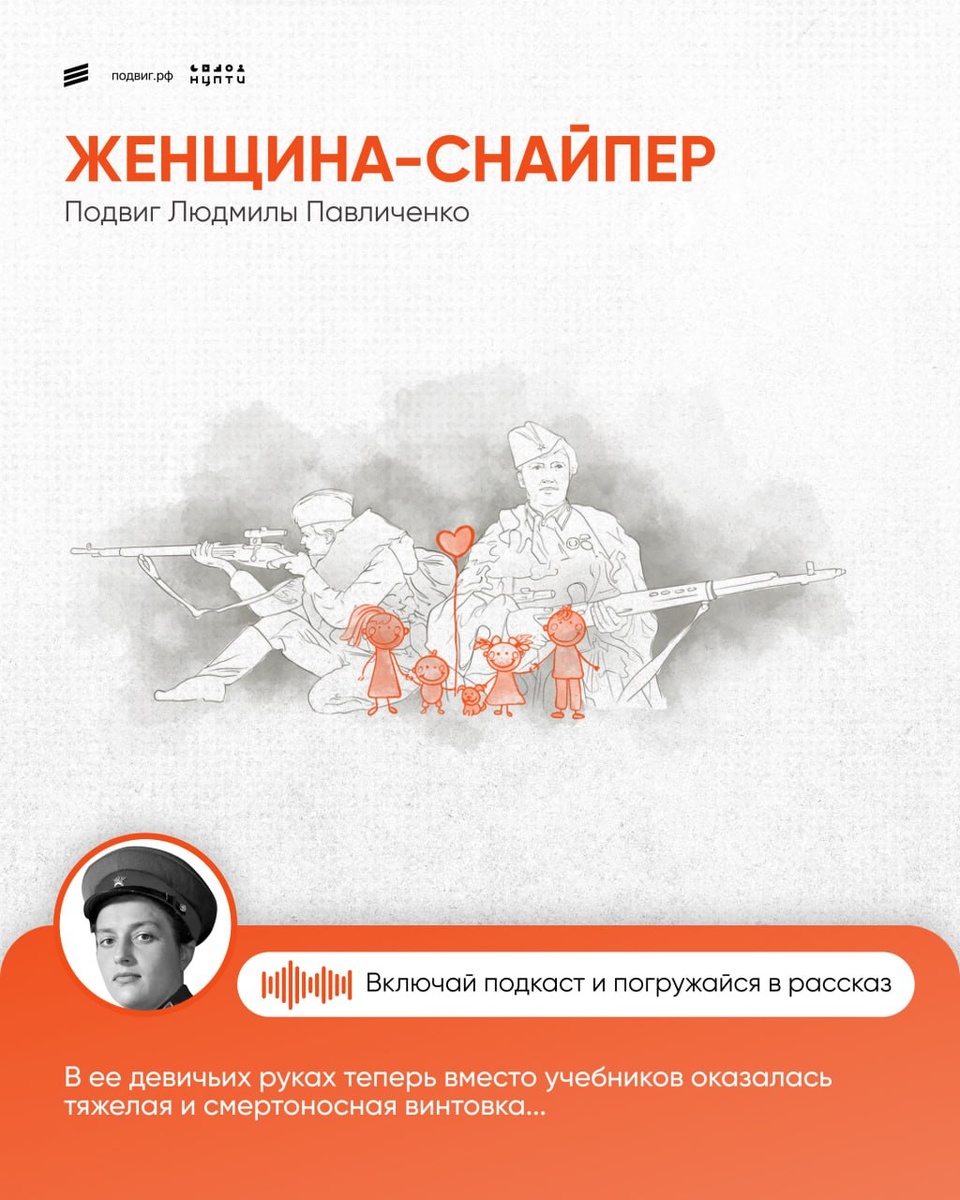 Имя, доказавшее женскую силу, упорство и непоколебимость Павличенко проявила героизм, обороняя Одессу и не давая немцам взять город в течение трех месяцев. Во время одного из заданий она получила тяжелейшее ранение — металлический осколок от снаряда попал ей в голову. Но женщина-снайпер вернулась на фронт. К июню 1942 г. на счету Людмилы было уже 309 подтвержденных уничтожений солдат и офицеров противника, в том числе 36 немецких снайперов. Читать художественный рассказ о подвиге Людмилы 💛 Подписаться на Подвиг.РФ #подвигрф #подвигрф_про_людей #ВеликаяОтечественнаявойна