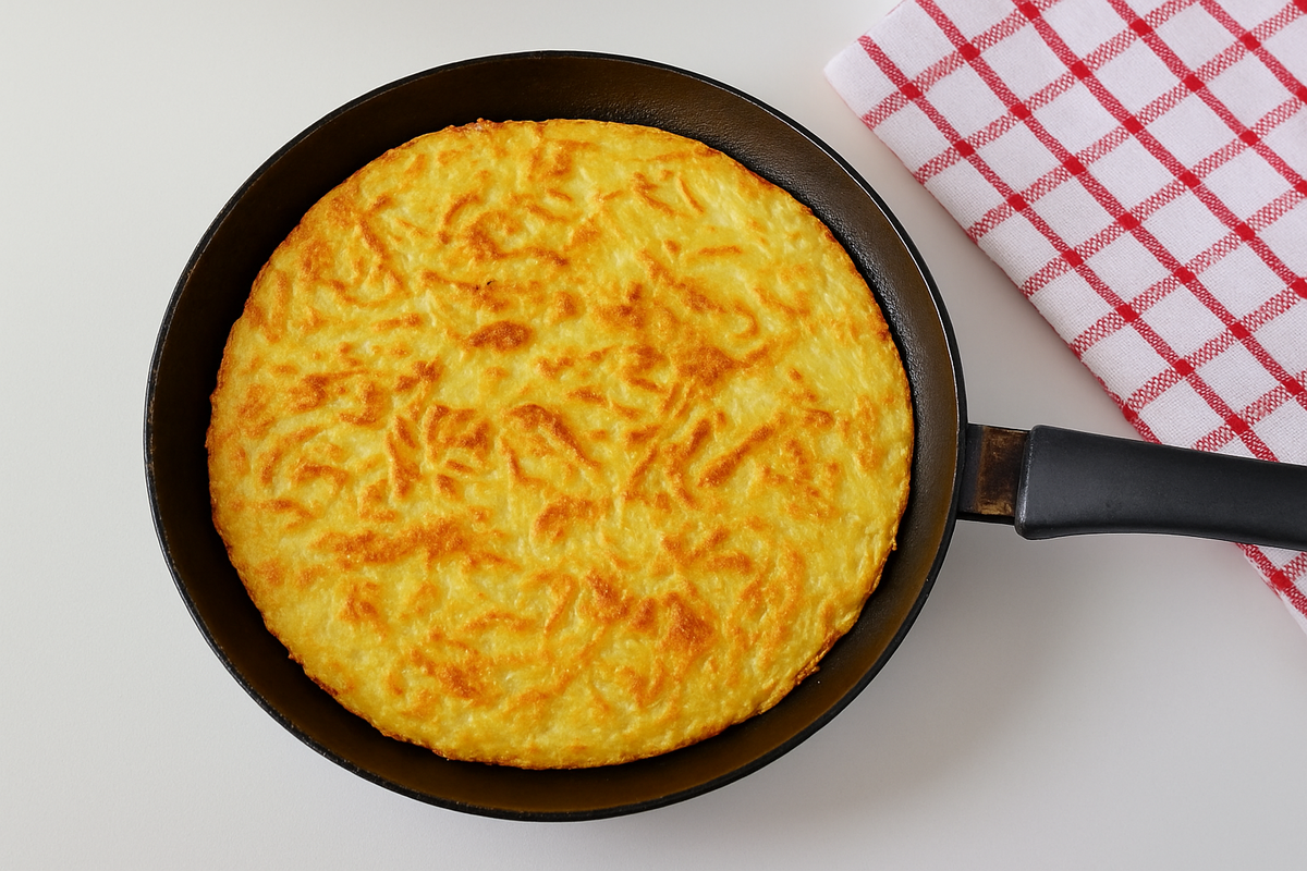 Иногда просто не хочется возиться. Ну честно. Стоишь у плиты, жаришь эти маленькие драники, переворачиваешь, перекладываешь — и вот уже вся кухня в масле, ты в муке, а времени ушло как будто на пир на весь подъезд. А теперь внимание: можно проще. Берём всё то же самое, что для обычных драников, но делаем один большой. Да-да, прям как оладушек на всю сковородку. Получается быстро, сытно и очень даже фотогенично — будто это не драник, а целый картофельный пирог. Что понадобится: Для подачи драник красиво режется на треугольники, как пицца. Можно сверху зелень посыпать, рядом положить сметану или даже копчёную колбаску. А если ты совсем в настроении поиграть в ресторан — добавь немного чесночного масла и свежемолотого перца перед подачей. Потому что всё то же самое, что мы любим в драниках, только проще и быстрее. Особенно если дома семья, дети или просто друзья на ужин — один большой драник спасает ситуацию, когда всем надо поесть, а стоять у плиты совсем не хочется. А ещё — это просто п