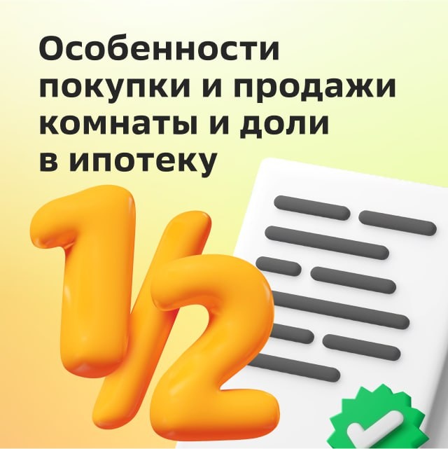 📈 Как купить или продать комнату или долю в ипотеку Бывают случаи, когда купить или продать нужно не целую квартиру, а долю или комнату в ней. В наших карточках разберемся, в чем разница между этими понятиями и какие особенности у таких сделок. Читать статью полностью 🖥️
