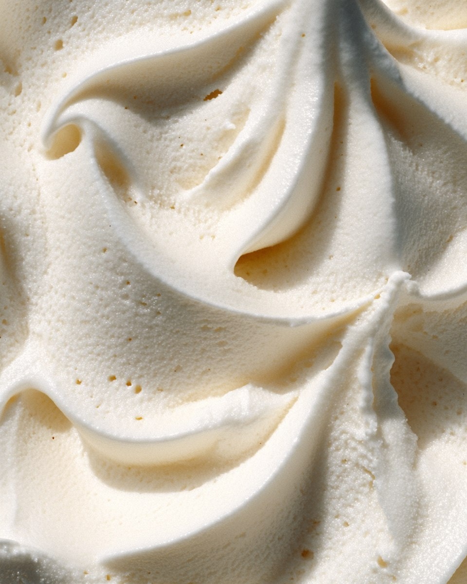 Создано на основе запроса: close up shot of gelato vanilla ice cream, macro, detailed, textured, swirls, minimalist, direct sunlight, portra 400, realistic,
