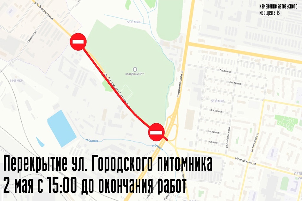 2 мая с 15 часов на улице будут укладывать верхний слой асфальта. От Ясной Поляны в сторону города пойдут два асфальтоукладчика. Все работы должны завершить в этот же день. Утром 3 мая, когда асфальт остынет, движение будет восстановлено. На время перекрытия выехать из города можно будет только по Северной объездной дороге. Во время асфальтирования нельзя будет подъехать к производственным базам и кладбищу на личном автомобиле. Автобус № 19 поменяет маршрут: поедет по Кирилловскому шоссе через Северную объездную дорогу. "Без неудобств и ограничений не обходятся ремонты дорог. Просим череповчан проявить терпение. Уже скоро дорога, которая так ждала ремонта, будет ровной, без ям и выбоин. Дата и время для выполнения работ выбраны специально, когда многие уедут из города", - сообщила пресс-секретарь департамента ЖКХ Карина Антонова. Улица Городского Питомника - первая в списке ремонтируемых улиц этого года. Всего в этом году в Череповце отремонтируют восемь участков. На работы выделено бо