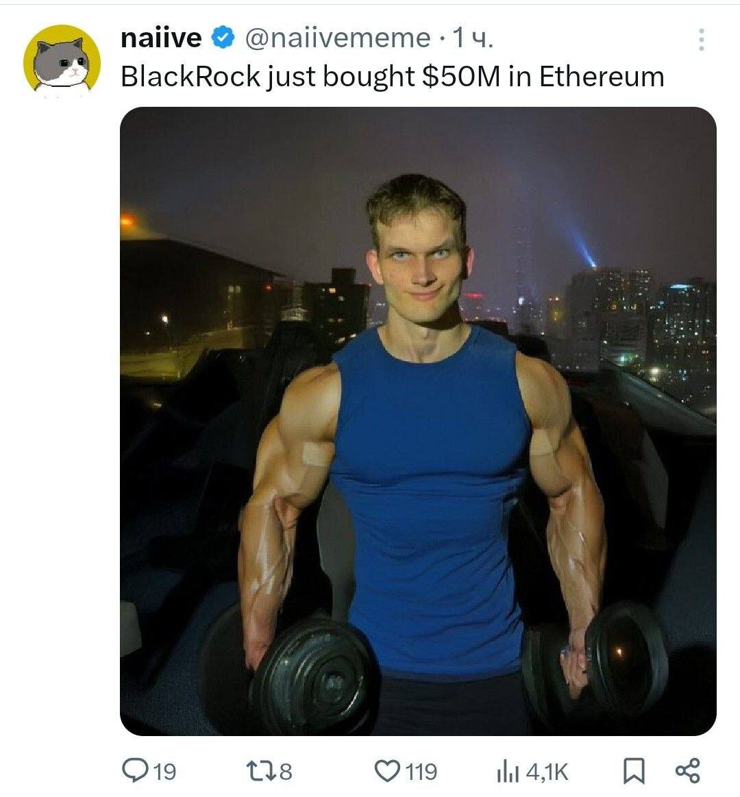 BlackRock недавно купил ETH на $50 млн. Ждём памп🕔
