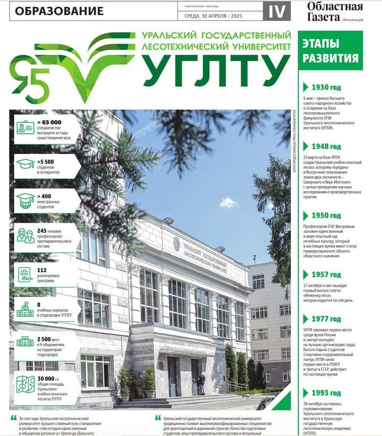 📢 Читайте эксклюзив! В новом выпуске «Областной газеты» № 93 (10200) от 30 апреля 2025 года — интервью с ректором УГЛТУ Евгением Петровичем Платоновым! ➡️ О предстоящем Юбилее, ключевых этапах развития университета и современных подходах к образованию читайте в электронном формате газеты доступном по ссылке: old.oblgazeta.ru/newspaper/...