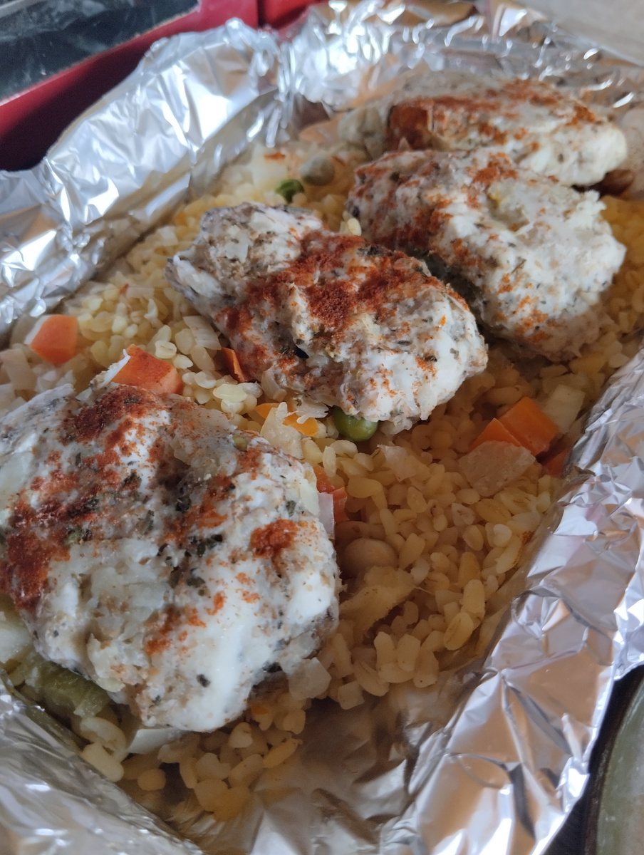Привет, друзья! Сегодня расскажу что я готовлю в своей мини-печке. *1.Мини-котлетки из куриной грудки с булгуром. В форму насыпать булгур, сверху выложить 4 мини-котлетки, которые я делаю из одной четвертой части упаковки фарша. К фаршу добавляю зелень и лук на тёрке, солю. В форму добавляю немного воды и посыпаю специями. К булгуру можно добавлять любые овощи на ваш выбор. Готовлю 20 минут при максимальной мощности. Попутно можно приготовить омлет и горячие бутерброды с сыром. *2.Мини запеканка из творога с клубникой и манкой. Формочку смазать маслом, присыпать манкой. Творог смешать с яйцом, сахаром и манкой, выложить в формочки, сверху добавить клубнику и немного сахара. Готовлю 20 минут при максимальной мощности. *3. Омлет с помидорами, сыром и колбасками. Рецепт я уже давала вот тут=> *4.Запекаю картошку с колбасками для жарки. Картошку тонко порезать, добавить немного подсолнечного масла в форму для запекания, смазать им каждую картофелинку. Поверх картошки положить колб