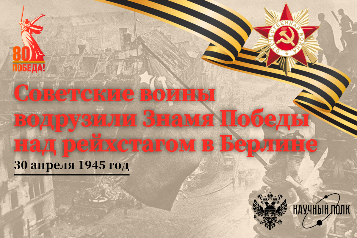 Ожесточенные бои советских войск за овладение зданием рейхстага (нижняя палата парламента Германии) велись с 29 апреля по 2 мая 1945 года в ходе Берлинской операции. Эту цитадель обороняли свыше одной тысячи человек с артиллерией и танками. Задача овладения зданием рейхстага была возложена на 79 стрелковый корпус 3-й ударной армии 1-го Белорусского фронта. Было решено, что водружение советского флага над рейхстагом должно стать символом окончательного крушения нацизма. По образцу государственного флага СССР было срочно изготовлено девять стягов - по числу дивизий, входивших в состав армии. После многократных атак к вечеру 30 апреля части советских войск ворвались в здание рейхстага. Бои шли за каждый этаж, тут и там возникали рукопашные схватки. Наконец на куполе поверженного рейхстага взвилось красное знамя, которое водрузили разведчики 756-го стрелкового полка сержант Михаил Егоров и младший сержант Мелитон Кантария во главе с заместителем командира батальона по политчасти лейтенанто