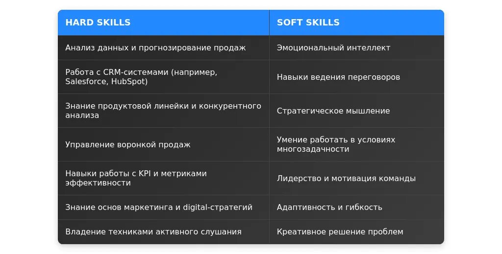 После адаптации: "Навыки B2B-продаж, управление клиентской базой, работа с CRM-системами (Salesforce, HubSpot), переговоры и заключение контрактов."