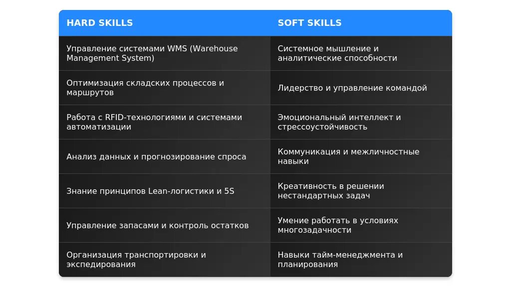После адаптации: "Знание WMS (1С:Логистика, SAP), управление складом, оптимизация процессов, работа с документами."