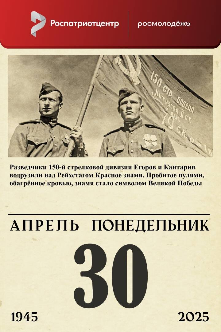 Бушует бой. Над вражеской столицей Взмывает ввысь Победы алый стяг. Последний залп, И весть над миром мчится: - Конец войне! Повержен лютый враг! Юрий Тумаков #КалендарьПобеды80 ❤️ Подписывайтесь на Роспатриот