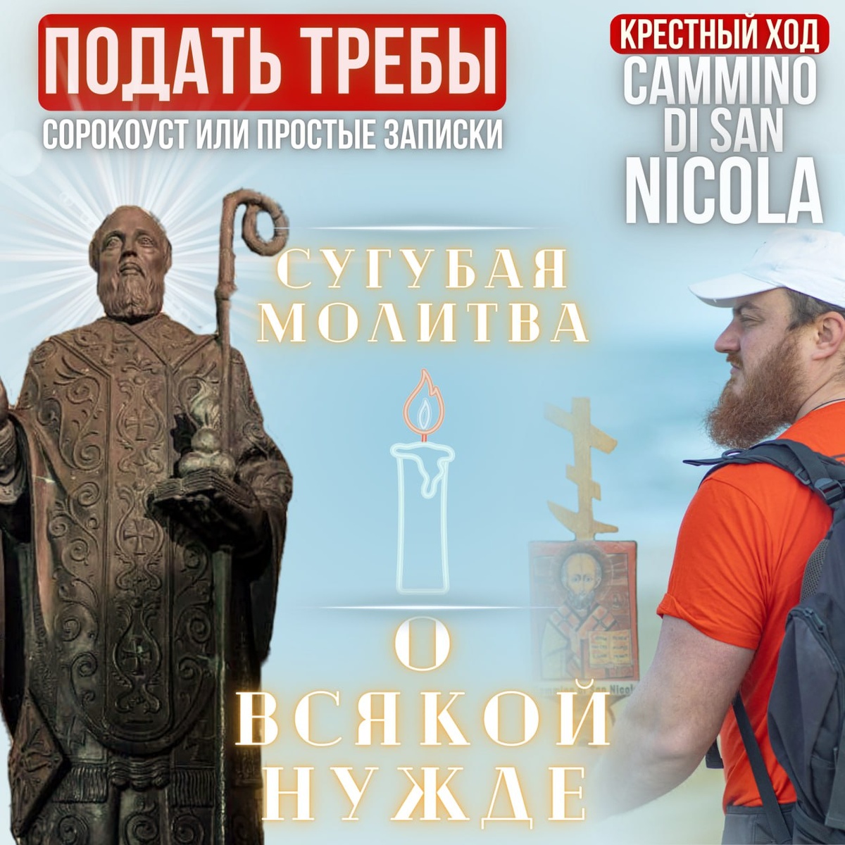 КРЕСТНЫЙ ХОД: CAMMINO DI SAN NICOLA 2025 сугубая молитва о всякой нужде Дорогие братья и сестры! Осталось совсем немного до начала Крестного хода. С 1 по 20 мая — каждый вечер мы будем вместе молиться акафистом Николаю Чудотворцу. 20 дней и 20 молитв — это будет настоящий молитвенный марафон. В эти дни мы сугубо молимся о всякой нужде: о здоровье, о работа, о материальное положение, о помощь в судах, в учебе — во всём. Присоединяйтесь к молитве! У каждого есть свои вопросы, свои нужды, свои трудности. И по опыту прошлых лет мы знаем, что Господь слышит, а святитель Николай — поспешно помогает. "Просите и получите" - так сказал Сам Господь. О фактах помощи из Крестного хода читайте здесь. ✍️ Желающие могут подать записки на сайте: 👉 https://spyridon-rimini.ru/treba/ ____ 📌 Все имена, поданные на сорокоуст будут помянуты в течение всего Крестного хода. 📌 Записки "В святом месте" будут помянуты один раз на ближайшей вечерней службе. 📌 Пожалуйста, следите за сроком истечения ран