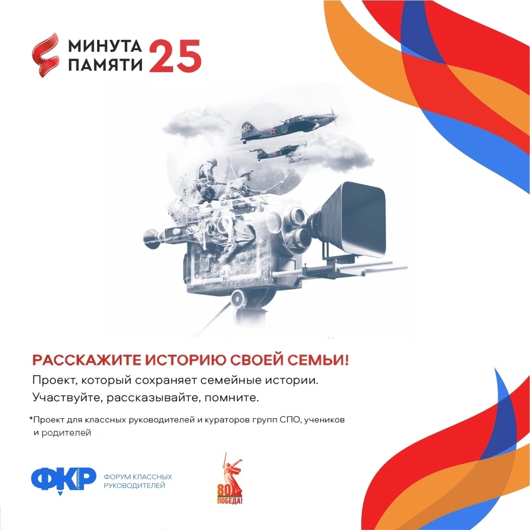 #Трек8 «Научные и образовательные проекты» Доброе дело 5: Минута памяти ФКР Минута памяти - Великая минута. В кровь рвётся сердце у гранитных плит… В летящих искрах виден блеск салюта – Всё помнится – никто не позабыт! Команда «Багульник» присоединилась к открытому ежегодному проекту «Минута памяти ФКР», которая проходит в формате минутных роликов в социальной сети ВКонтакте. Во многих семьях информация о ГЕРОЯХ уже почти утеряна. «Минута памяти» помогает нам не только сохранить семейные истории и память о ветеранах Великой Отечественной войны, но и поделиться с другими. Токарев Антон и Солдатенко Анастасия, участники нашей команды с гордостью рассказали о своих прапрадедушках и совершили доброе дело в рамках Всероссийского проекта «80 добрых дел к Победе». Приглашаем и вас присоединиться к проекту «Минута памяти ФКР» https://vk.com/wall-204936543_250944 Ссылки на видеоролики ВКонтакте: https://vkvideo.ru/video-230307037_456239017 https://vkvideo.ru/video-230307037_456239018 #80Добры