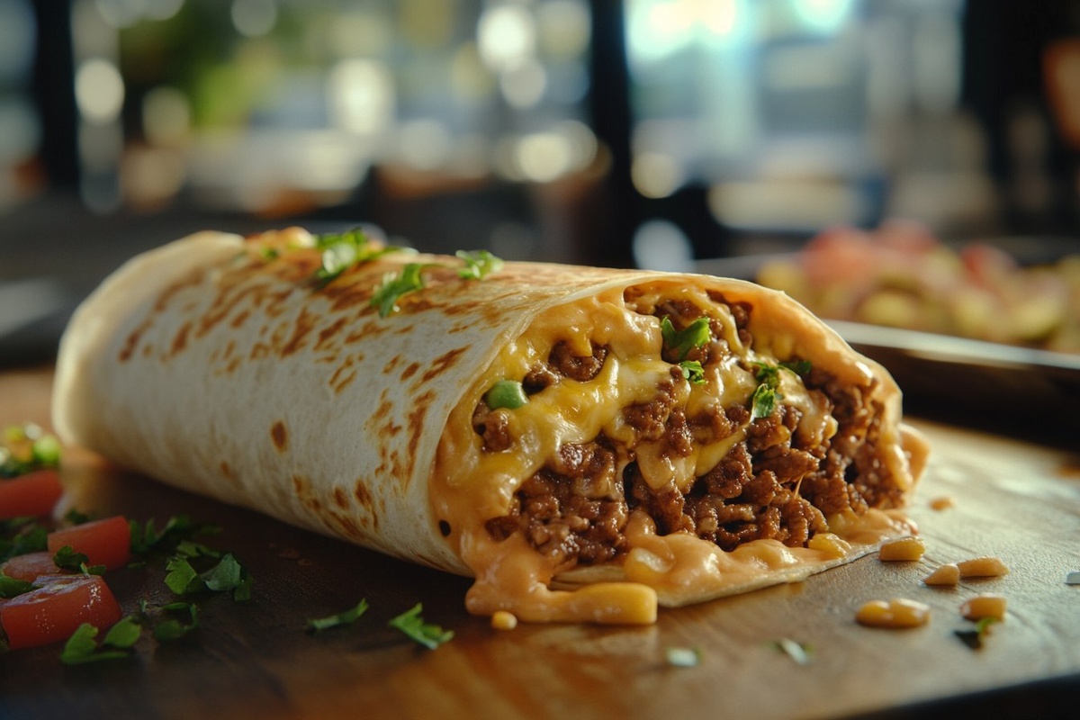 Создано на основе запроса: Title: Beefy Nacho Cheese Wrap | STYLE: Close-up Shot right view | EMOTION: realistic as possible | SCENE