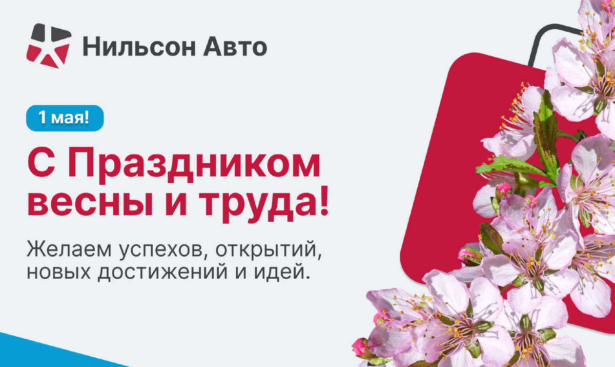 от всей команды Нильсон Авто поздравляем Вас с Праздником весны и труда - 1 мая!