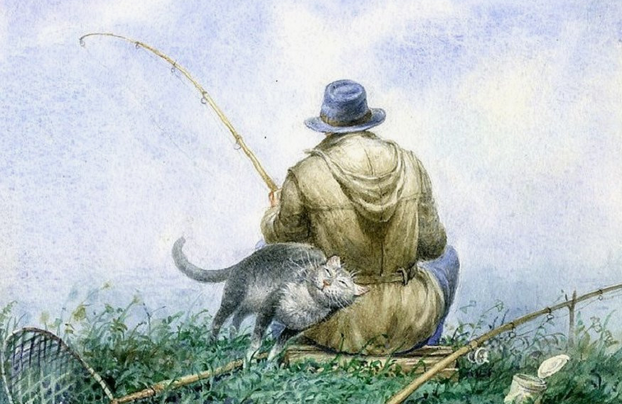 Сложилась у этих друзей традиция – собирается дядя Миша на рыбалку, а Василий каким-то образом чует это и, как только хозяин выдвигался на реку, тот бежал рядом. И как бы его хозяин не гнал от себя – через несколько минут оказывался с другой стороны от хозяина. И так это продолжалось практически каждый раз. По итогу Васька важно и с чувством собственного достоинства, а также с пониманием, что у него сегодня будет рыбный день, не спеша переставлял лапы идя с хозяином. При этом его пушистый хвост, как антенна, предупреждал окружающих котов и иже с ними – внимание, не отвлекать, идем на особое задание, и хозяин только мой!