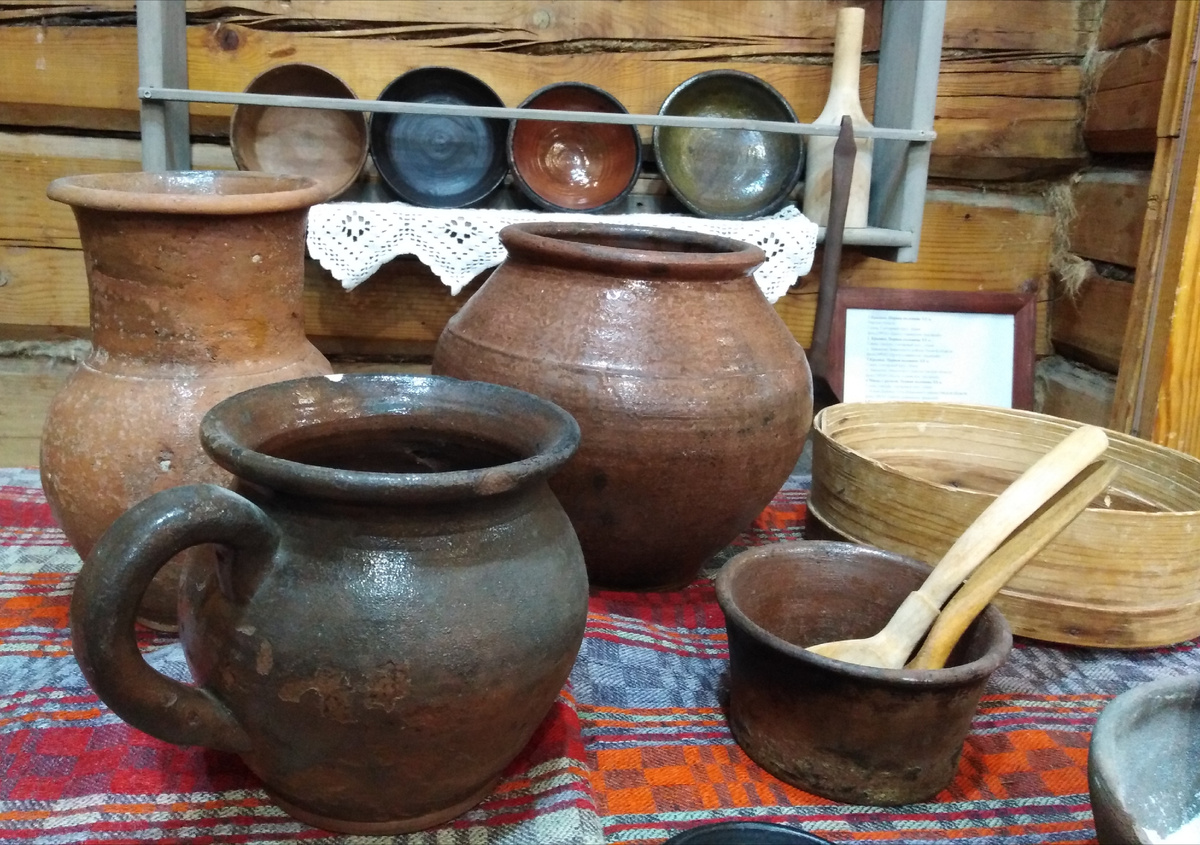 Крынка – тоже локальное название, которое занесли южнорусские переселенцы. Далеко не везде этот сосуд называется так. При всей консервативности формы крынки отличались одна от другой, поскольку у каждого мастера-гончара была своя рука и свои предпочтения. Одни делали тулово похожим на шар, другие ближе к квадрату, третьи – в форме капли. Хозяйки примечали подобные различия и по приметам распределяли: вот эту – под молоко, эту – под квас, ту – под сметану. В конце XIX века стали выпускаться стеклянные крынки, позволяющие видеть, что находится внутри. В дальнейшем они эволюционировали в банки. На выставке наглядно показана вся цепочка. Кстати, стеклянных крынок сохранилось гораздо меньше, чем керамических ввиду их хрупкости.