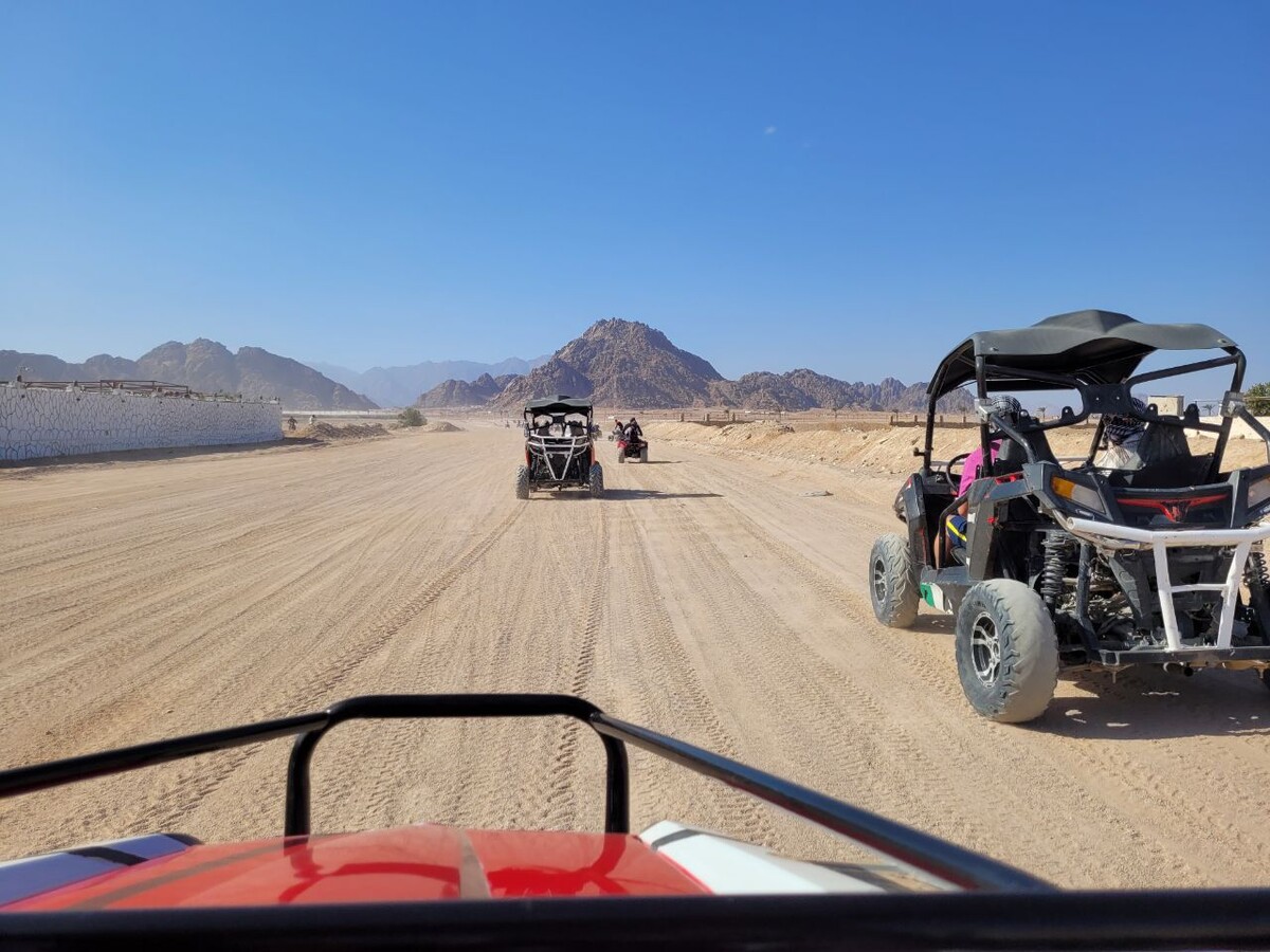Это моё второе сафари в Египте. Первое было ещё давным давно, лет 10 назад. Тогда по пустыне в окрестностях Шарм-Эль-Шейха я каталась на квадроцикле. Ныне, ради разнообразия, решила попробовать багги. Рассказываю, во сколько мне обошлось сафари на багги, что в этой экскурсии понравилось, а что откровенно расстроило. Экскурсию "Сафари по пустыне" на багги я приобрела, отдыхая в Шарм-Эль-Шейхе. Забронировала я её на сайте турагентства Альбатрос-Тревел. В феврале 2025 она стоила 15 баксов с человека, включая трансфер из отеля. Точнее, такая цена была актуальна для тех, кто катался вдвоём на одном багги. Если человек - один, стоимость экскурсии составляла уже 30 долларов. Прошло всего 2 месяца, но цена выросла. Ныне такая экскурсия стоит уже 20 баксов с человека, а не 15, как было у меня. В назначенное время за мной приехал небольшой микроавтобус. До пустыни ехали около получаса, по пути забрав несколько туристов. После этого всех отправили к месту, где можно купить арафатку. (В пустыне