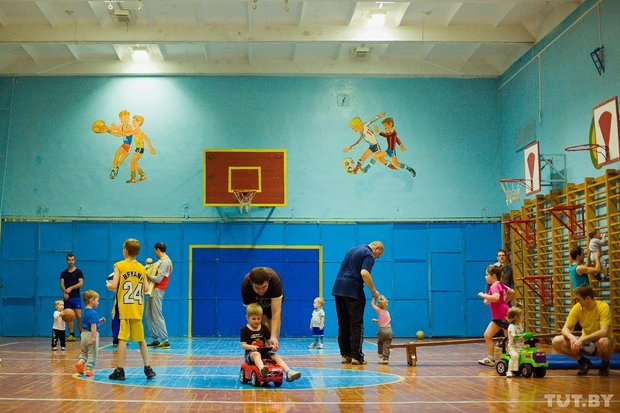 Со всего города сюда съезжаются отцы, которым не все равно. Мамам в заведение вход воспрещен. Идея проста: два раза в неделю папы на несколько часов отправляются с детьми в обычный школьный спортзал. Мамам положено в это время расслабляться и получать удовольствие от жизни. Большинство, конечно, традиционно выбирают уборку-готовку, но есть и те, кто не халтурит и честно использует отведенные часы на радости. Но папы стараются не только ради мам. Бывший военный, а по совместительству отец пяти дочек Геннадий уверен, что подобная форма общения очень важна прежде всего для детей: – На площадках детских во дворах не та атмосфера. Там ведь обычно одни мамы собираются. А для ребенка в таком возрасте, особенно для девочки, важно, чтобы отец был рядом, чтобы собственным примером показывал заботу. Чтобы дочь видела, каким должен быть папа и потом с такой же правильной и здоровой моделью поведения искала себе мужа. Руководит проектом «Папа-зал» гомельчанин Сергей Бычков. Сам многодетный отец, а