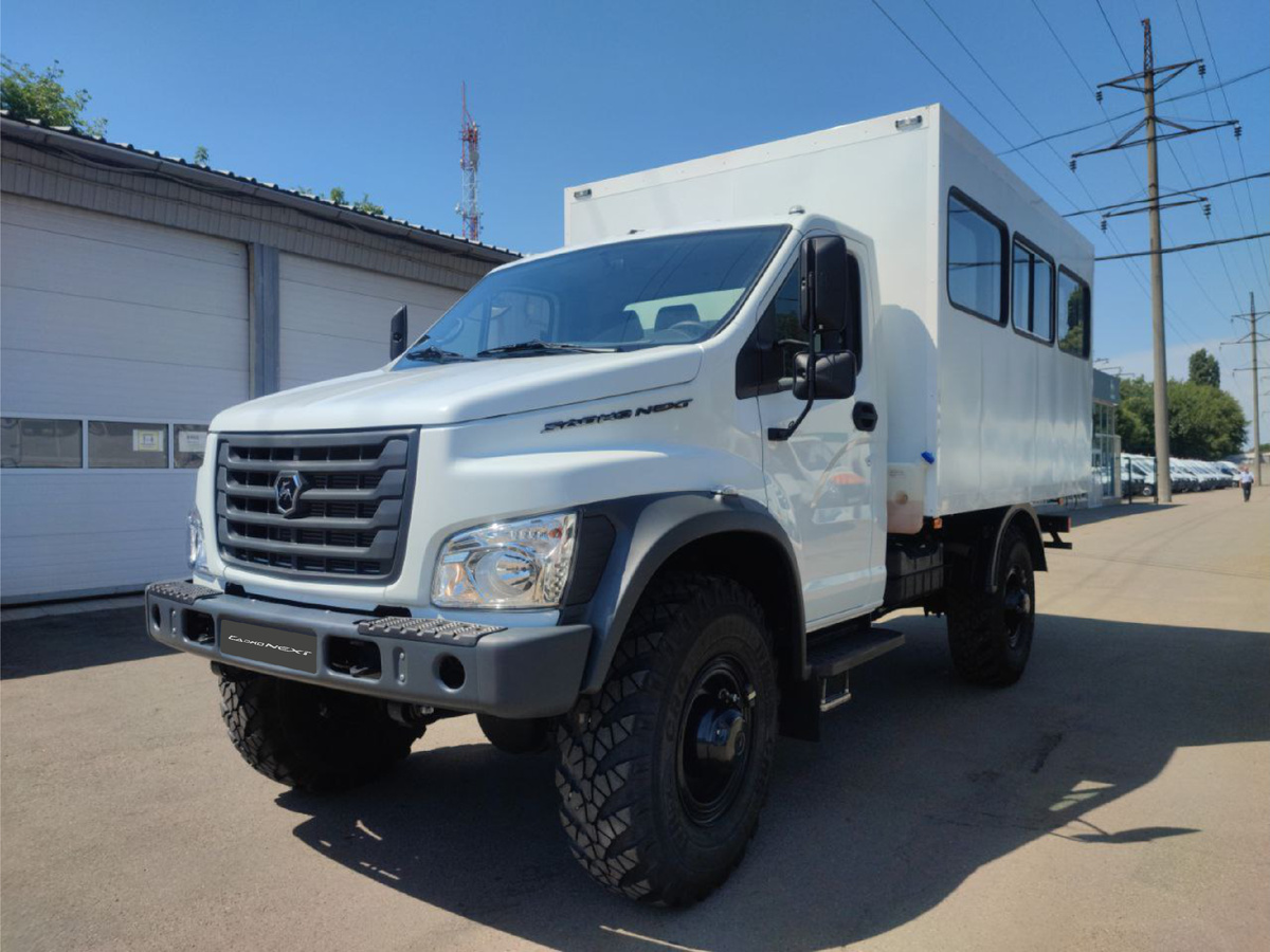 Есть грузовики, созданные исключительно для асфальта. А есть — для жизни. Такой, где дороги появляются только на карте, а техника работает в мороз, дождь или по капот в грязи. Садко NEXT — как раз из вторых. Он не боится бездорожья, потому что вырос на нём. История Садко NEXT началась в конце 90-х, когда ещё до завершения выпуска легендарного ГАЗ-66, стартовала разработка его преемника — ГАЗ-3308 «Садко». Это был шаг вперёд: капотная компоновка, просторная кабина, повышенный комфорт и грузоподъёмность, улучшенная устойчивость. Грузовик отлично показал себя в роли вездехода, но время требовало нового уровня. Так появился Садко NEXT. Полная масса новинки выросла по сравнению с предшественниками — 6,8 т. Садко NEXT способен буксировать прицеп до 2,65 т, а максимальная масса автопоезда достигает 9,5 т. Модель предлагается с колёсной базой 3 770 или 4 515 мм и кабиной на 3 или 7 мест. Садко NEXT оснащается надёжным дизельным мотором ЯМЗ-53443 объёмом 4,43 л и мощностью 149 л.с. и 5МКПП. Рес