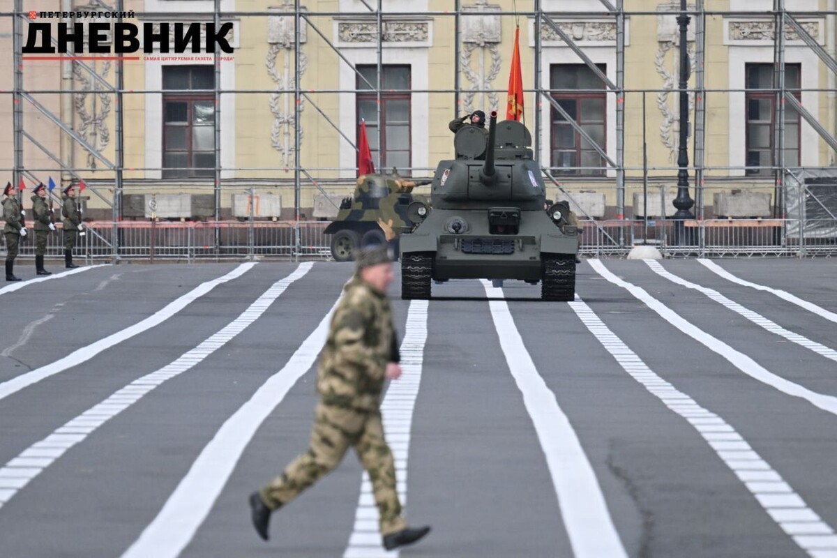 На Дворцовой площади в Петербурге состоялась репетиция парада Победы, посвященного 80-й годовщине победы в Великой Отечественной войне. В ней приняли участие более 5,5 тысячи военнослужащих и сотрудников силовых ведомств, в том числе свыше 200 росгвардейцев. «Петербургский дневник» публикует фотографии с репетиции.
