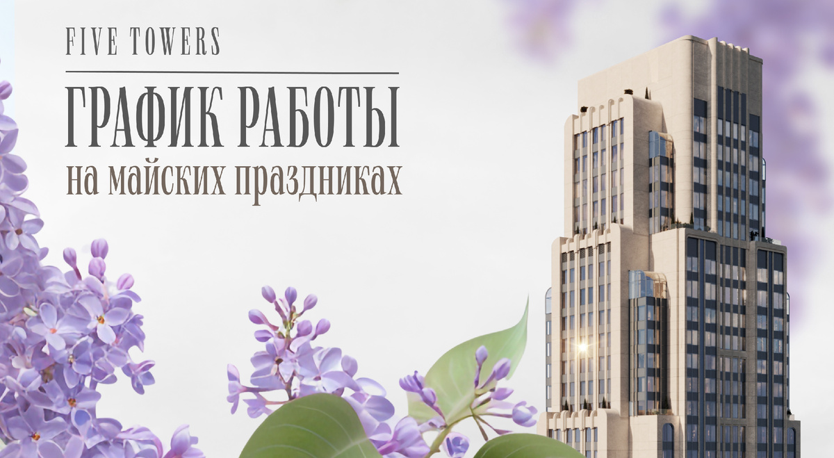 Майские праздники — отличный повод выбрать идеальную квартиру в FIVE TOWERS. В праздничные дни мы работаем для Вас ежедневно.