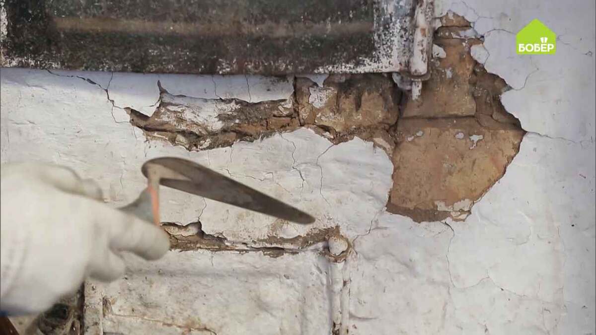 Спустя некоторое время активного использования печи или после зимнего сезона начинает сыпаться штукатурка. Печник покажет, как правильно замазать щели. При помощи мастерка удалите остатки материала. Сбрызните место ремонта водой, чтобы прибить пыль, — это улучшит адгезию штукатурки. Приготовьте штукатурку: возьмите кладочный раствор для печи (песок и глина) и добавьте известь, которая является экологичным пластификатором. Необходимо взять 10 процентов от общей массы и тщательно перемешать составляющие. Готовая штукатурная смесь для ремонта содержит химические пластификаторы, которые при нагревании могут выделять вредные вещества. Перед началом работы печь должна быть тёплая. Возьмите раствор и поместите в щель с давлением. Подобным образом заполните все щели. При помощи мастерка тем же раствором выровняйте штукатурку относительно уже имеющегося состава. В данном случае получился один слой. Если необходимо нанести два слоя, то перед нанесением второго следует тщательно просушить первый