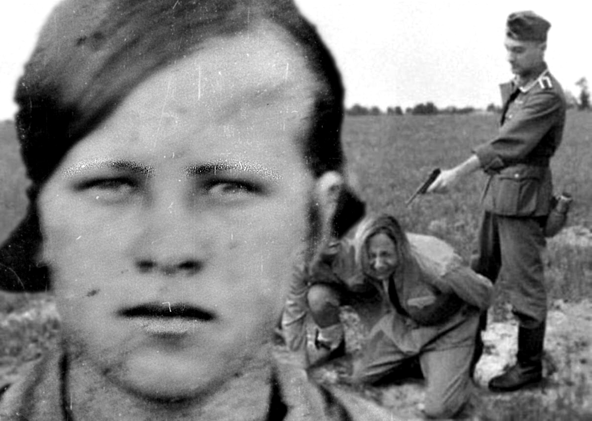 Правая ее рука была вывернута и заломлена за спину, живот открыт, платье оборвано