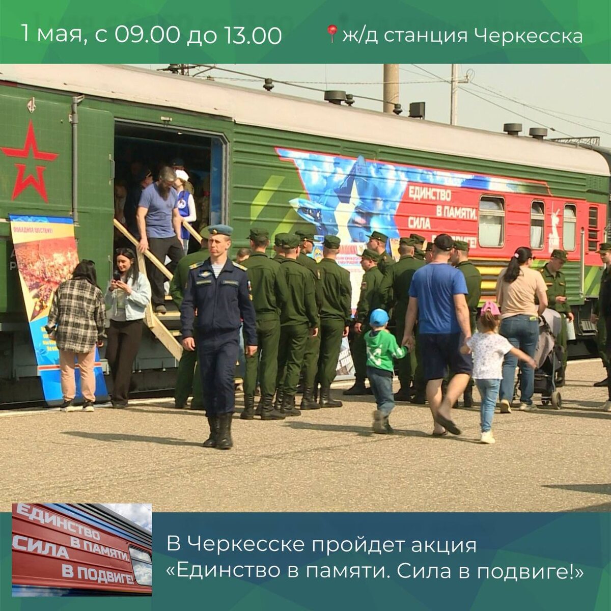 В четверг, 1 мая, на железнодорожной станции Черкесска пройдет акция «Единство в памяти. Сила в подвиге!» с использованием одноименного агитпоезда.