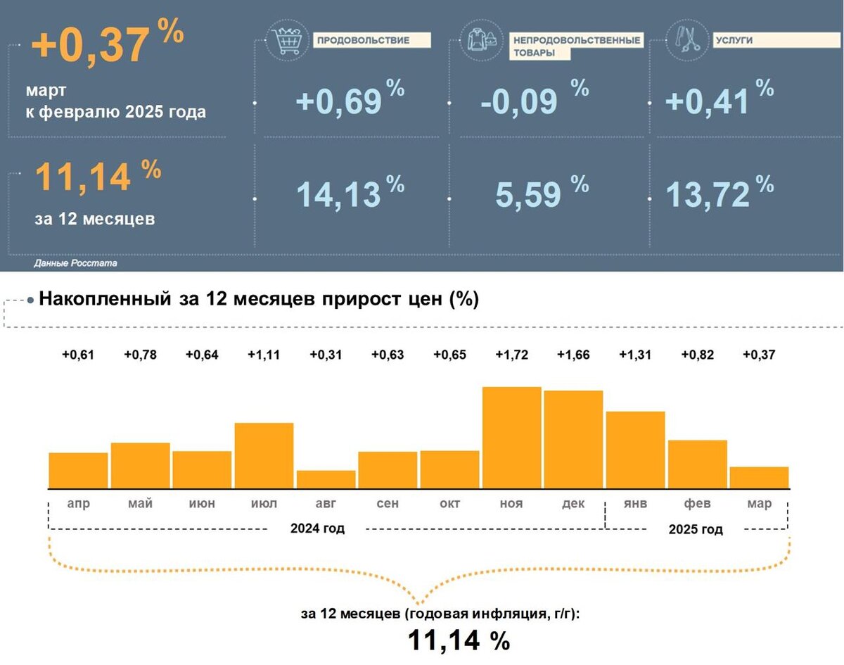 В марте уровень годовой инфляции в Марий Эл снизился и составил 11,14%, при этом он остался выше, чем в целом по России (10,34