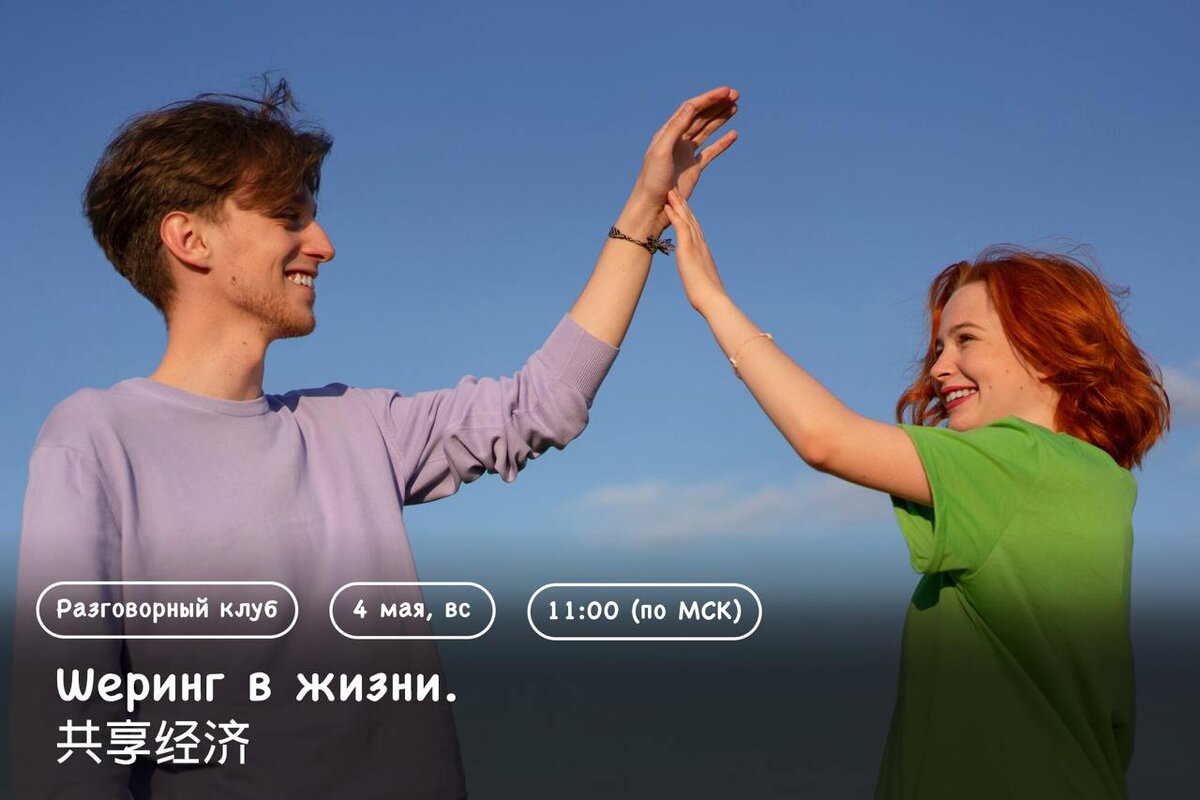 ⚡️ВНИМАНИЕ⚡️ Объявляем очередную встречу нашего разговорного клуба! ⏰ Когда? В воскресенье, 4 мая, в 11.00 (время МСК) на онлайн платформе. 🚀 Тема встречи: Шеринг в жизни. 共享经济 👨 Ведущий встречи: наш китайский друг, аспирант ВШЭ Ли Юньцин (Петя). 🤍 Регламент встречи: 5-8 человек и 90 минут. 🤍 Стоимость: первая встреча будет условно-бесплатной — 200 р. Далее участие в постоянной группе разговорного клуба — 1200 р/ одно занятие или 4000 р/месяц (4 занятия). 👉 Регистрация по ссылке