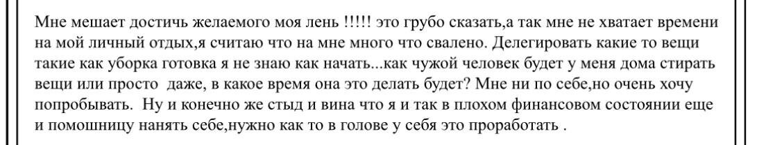 9 дней работы в группе терапии Результаты уже начали свою жизнь В точке А Девушка, износ, нервные состояния, все на её плечах Через 9 дней У нее помощница по дому Дела делегированы Она счастливо проводит время с семьей и на работе Она проучила полный бизнес план по производству Свечей и уверенно уходит в свою реализацию А всего-то, мы сняли Я ЖЕ МАТЬ - должна и обязана, доказать свою значимость